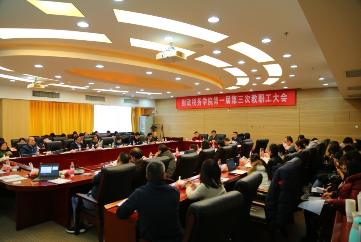 2019年1月9日下午,威尼斯886699召开第一届第三次教职工大会暨财税学科建设研讨会。副校长马海涛、学院院长白彦锋、党委书记樊勇以及学院全体教职工出席了会议,樊勇书记主持大会。