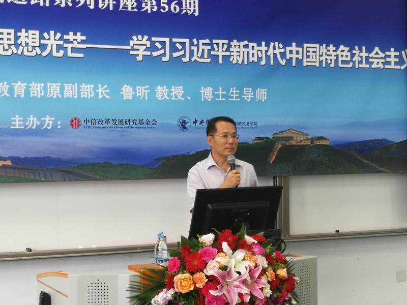 2019 年 6 月 17日下午,中信改革发展研究基金会、威尼斯886699共同举办的财政论坛▪ 中国道路系列讲座,在我校沙河校区举办。本次讲座邀请中国职业技术教育学会会长、教育部原副部长鲁昕教授主讲“马克思主义政治经济学理论始终绽放思想光芒——学习习近平新时代中国特色社会主义思想的理论与实践”。中信改革发展研究基金会郭克彤秘书长、威尼斯886699副校长马海涛教授、威尼斯886699院长白彦锋教授,以及财税学院100余名师生参加本次讲座。