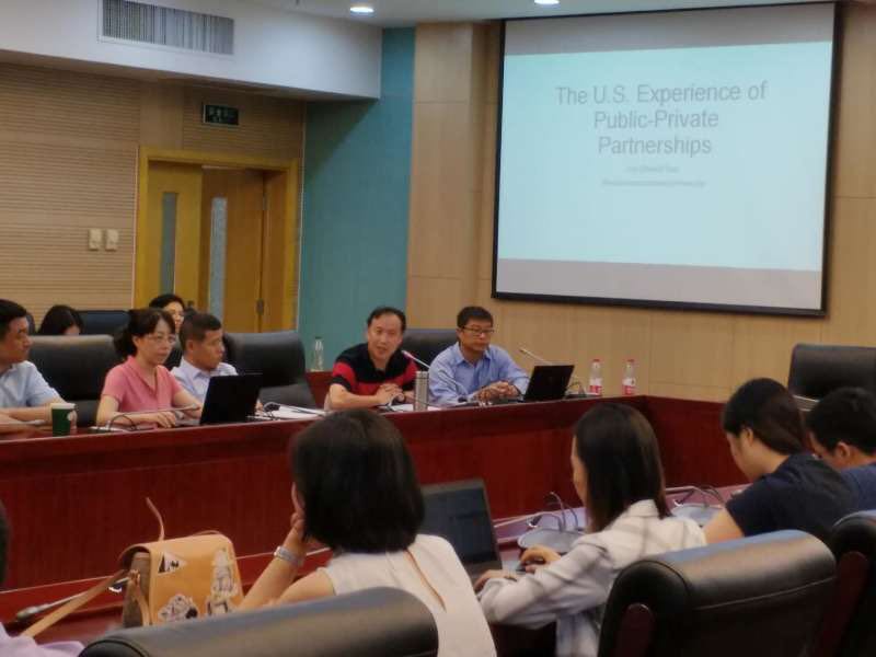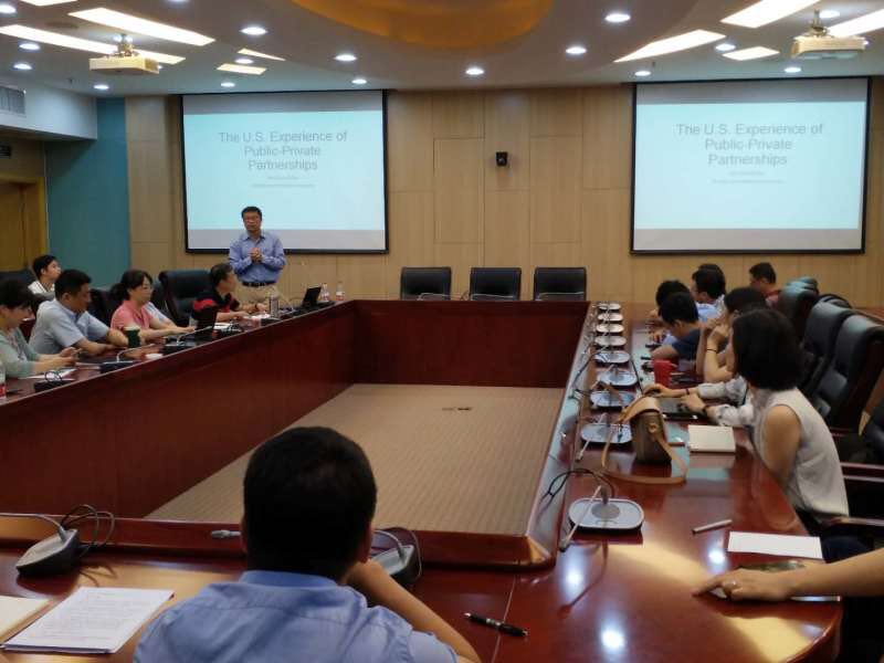 2019年7月1日下午,由威尼斯886699中财-中证鹏元地方财政投融资研究所举办的“美国PPP发展的现状及前景分析”讲座在我校举办。美国佛罗里达国际大学公共政策与管理系郭海副教授就这一主题进行了精彩讲解。中财-中证鹏元地方财政投融资研究所研究人员、威尼斯886699财税学院副院长任强教授、副院长何杨教授、姜爱华教授、副所长李升副教授、副所长王威副教授以及财税学院部分师生、部分财政部PPP专家库专家和部分北京大学PPP研究中心专家库专家参加了本次活动。讲座由中财-中证鹏元地方财政投融资研究所执行所长温来成教授主持。