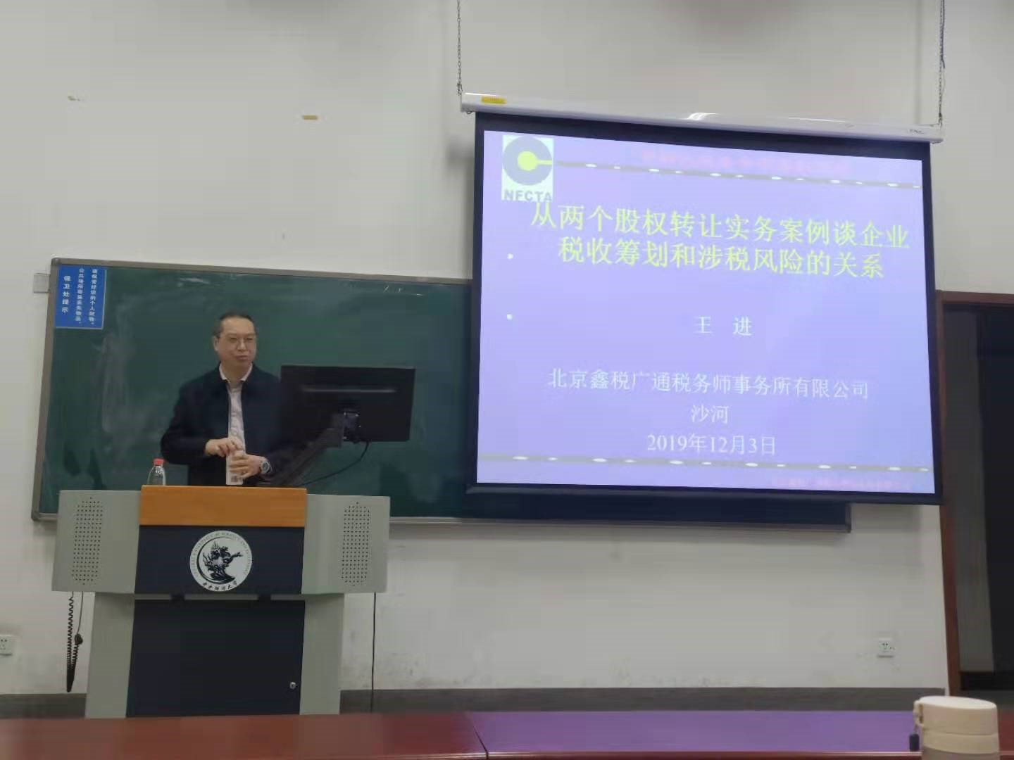 2019年12月3日晚17:50,沙河校区东区主教213举办了财税学院2019税务专硕第55期案例研讨课,主讲人王进老师,威尼斯886699杨龙见老师进行主持。