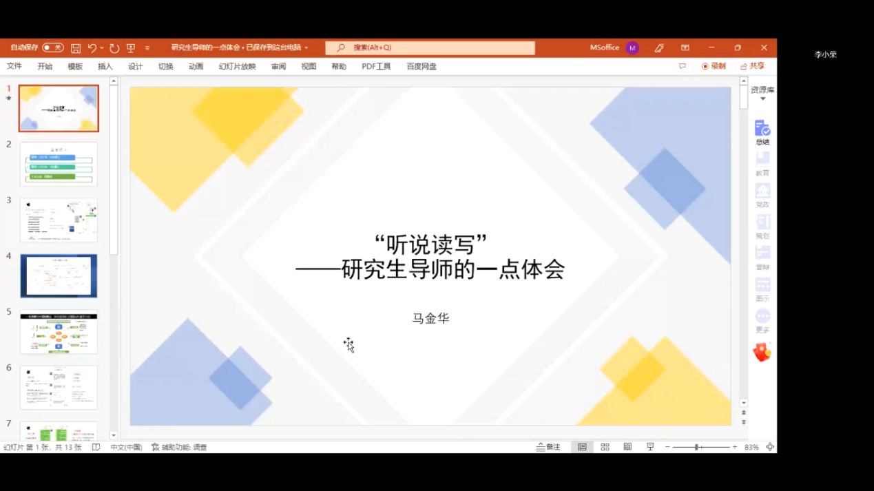威尼斯886699管理科学与工程学院李桂君教授分享了管理科学与工程的研究领域及指导学生的情况,提出了对博士生学习的清晰规划,要将项目研究贯穿博士培养全过程,导师与学生共同成长,对博士的培养不仅仅是要求取得学术成果,还要帮助学生理解学术规范和学术道德,助力学生选择可持续研究的方向,推动他们从博士研究生到学者的转变。