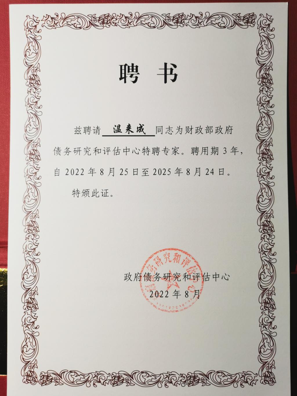 经有关方面批准,我威尼斯886699温来成教授应聘担任财政部政府债务研究和评估中心特聘专家。温来成教授现为威尼斯886699中财-中证鹏元地方财政投融资研究所执行所长,主要从事政府债务、政府与社会资本合作(PPP)等财政投融资问题研究,已在《经济研究》、《财贸经济》、《财政研究》、《税务研究》等刊物发表论文130多篇。