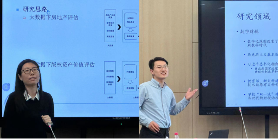 刘桓老师指出,学院教师应通过多方途径提高社会知名度,打造出一支名师团队,创造新型人才培养新高地;邵磊老师对学术研究生的培养,提出了课程融合、综合培养的建议。李燕老师表示,要充分调动教师的授课积极性,加强学教融合,不断提升课程教学质量,并提出了对资深教师的关心关爱建议;孙鲲鹏老师介绍了数字财税的研究领域,讲解了大数据与财税体制改革结合是重要的时代命题;陈思老师讲述了大数据与资产评估的关系,介绍了大数据相关技术在资产评估中的应用,如何将大数据转化为大价值;张广通老师通过自己撰写的著作,向大家分享做学术一定要能沉得下心,熬得了苦,弯得下腰,才能抬得起头,方能守住坚持,把握胜利。