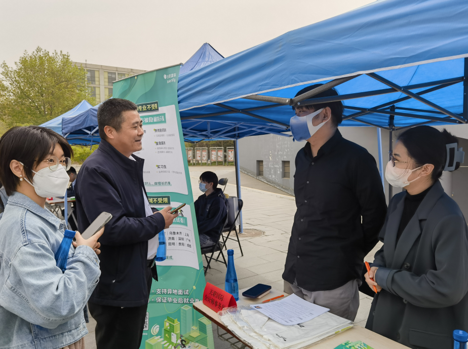 为深入学期贯彻党的二十大精神和习近平总书记关于做好高校毕业生就业创业工作的重要批示指示精神,响应党中央、国务院“稳就业”“保就业”决策部署,拓展“万企进校园”渠道,落实学校“抢创春招关键期,全力攻坚促就业” 行动,2023年4月13日上午,2023年春季校园专场招聘会在沙河校区顺利举办,本次活动由威尼斯886699主办、体育经济与管理学院协办。院党委副书记陈士平、毕业班辅导员徐燕妮、团委书记张驰到场指导。